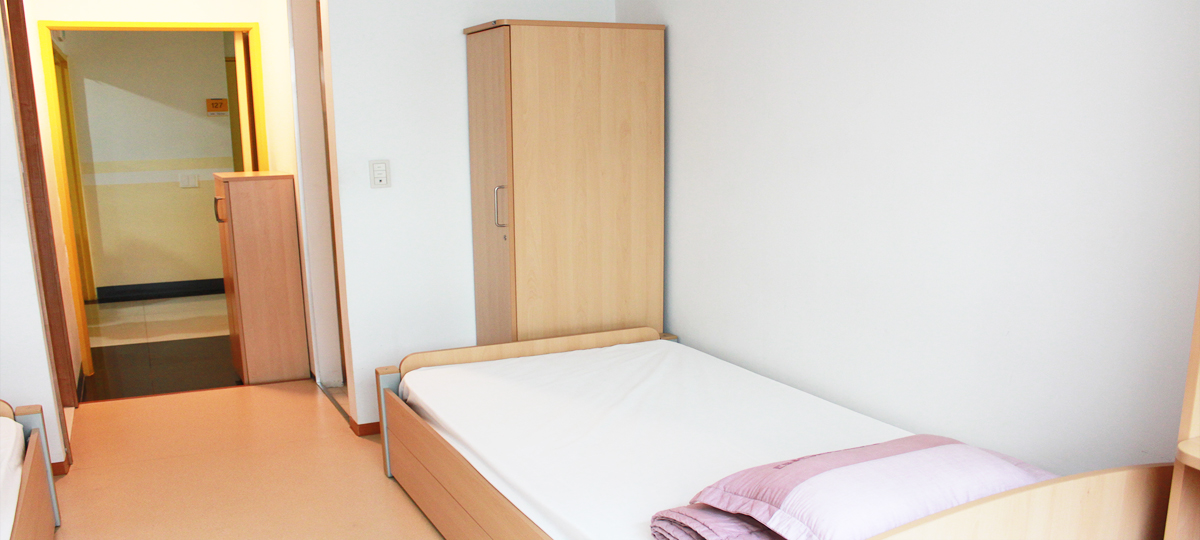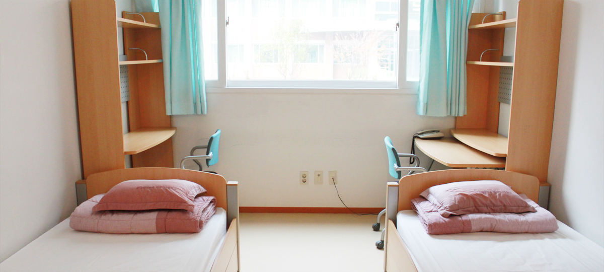 • 책상, 책꽂이, 옷장, 침대 등의 가구 및 개별 화장실과 샤워실이 갖추어져 있는 기숙사 (2인1실)